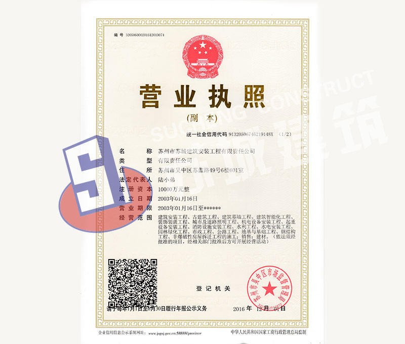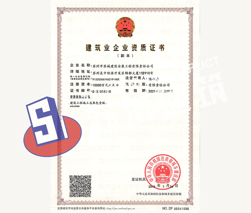 蘇州市蘇城建筑安裝工程有限責(zé)任公司,擁有主項(xiàng)建筑工程施工總承包一級資質(zhì),增項(xiàng)市政公用工程施工總承包二級資質(zhì)和建筑裝修